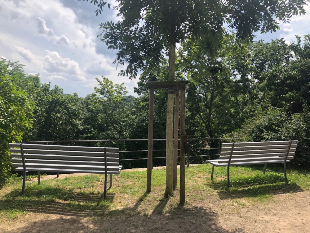 Wer hier Platz nimmt, kann das steinerne Ensemble, das so viele hundert Jahre schon an diesem Ort thront, noch einmal in aller Ruhe auf sich wirken lassen.