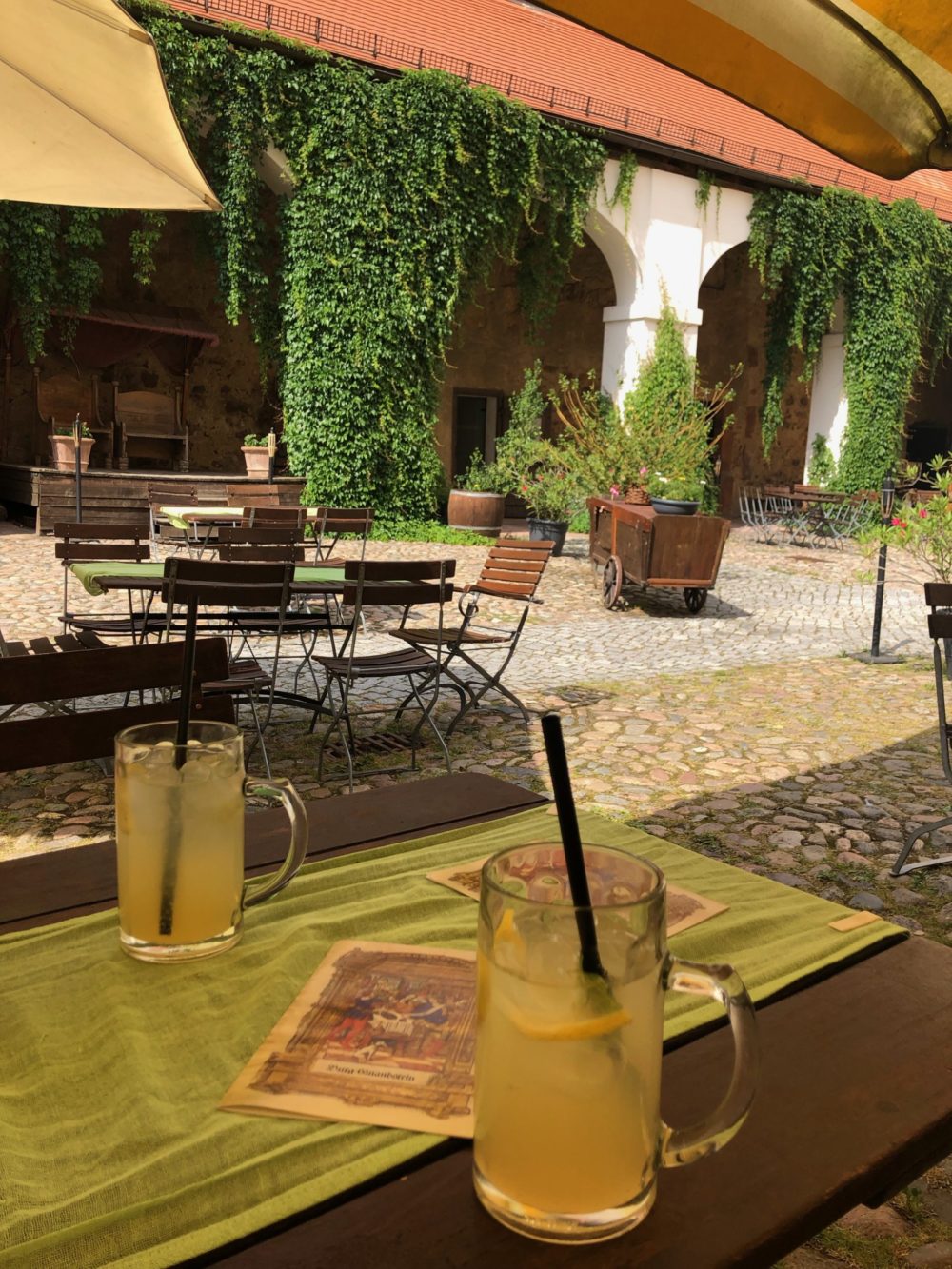 Der Innenhof ist lauschig, der Freisitz wunderbar und die offerierte Hausbrause ein Genuss, so dass man das geschichtsträchtige Ambiente bei schönem Wetter mit allen Sinnen genießen kann.