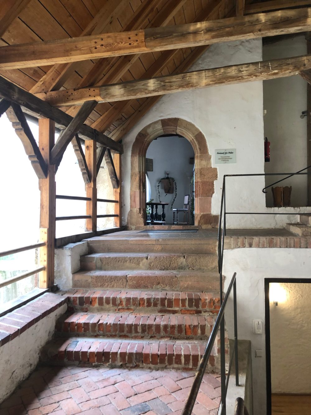 Dann noch wenige Meter und man betritt den altehrwürdigen Burghof. Rechter Hand befindet sich der Eingang zum Museum, in dem moderne und alte Elemente gekonnt kombiniert sind.