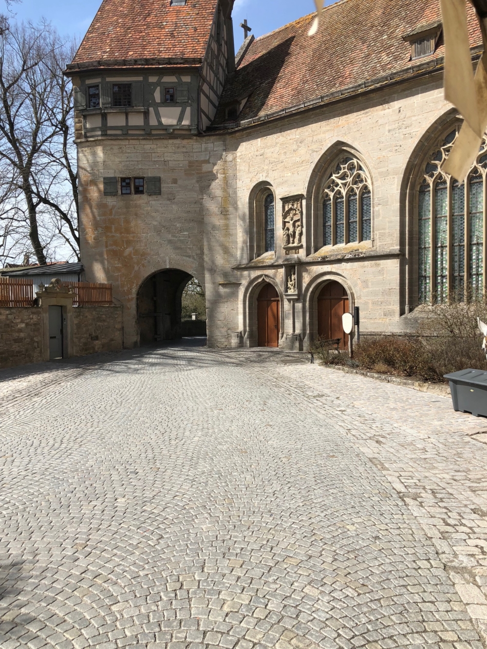 Sie wurde im Jahre 1475 zu Ehren des heiligen Wolfgang errichtet und stellt insofern eine Besonderheit dar, weil sie neben den Gebetsbänken in die Mauern eingelassene Schießscharten besitzt. Immerhin liegt die Kirche direkt neben dem Klingentor und bot daher ein gutes Angriffsziel für solche plündernden und brandschatzenden Truppen, wie sie im 30jährigen Krieg leider öfter zu finden waren. Wird Ihnen Herr Tilly gerne bestätigen.
