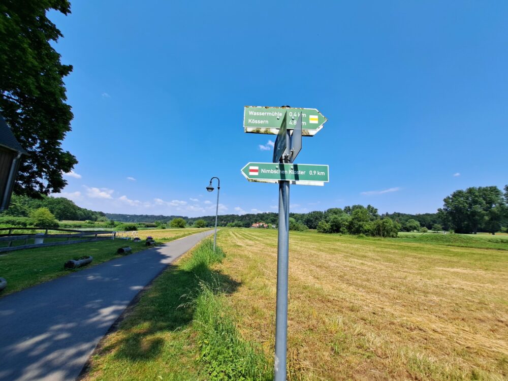 Von hier aus führt der Radweg durch eine verwunschen wirkende Auenlandschaft, durch grüne Wiesen und Wälder.
