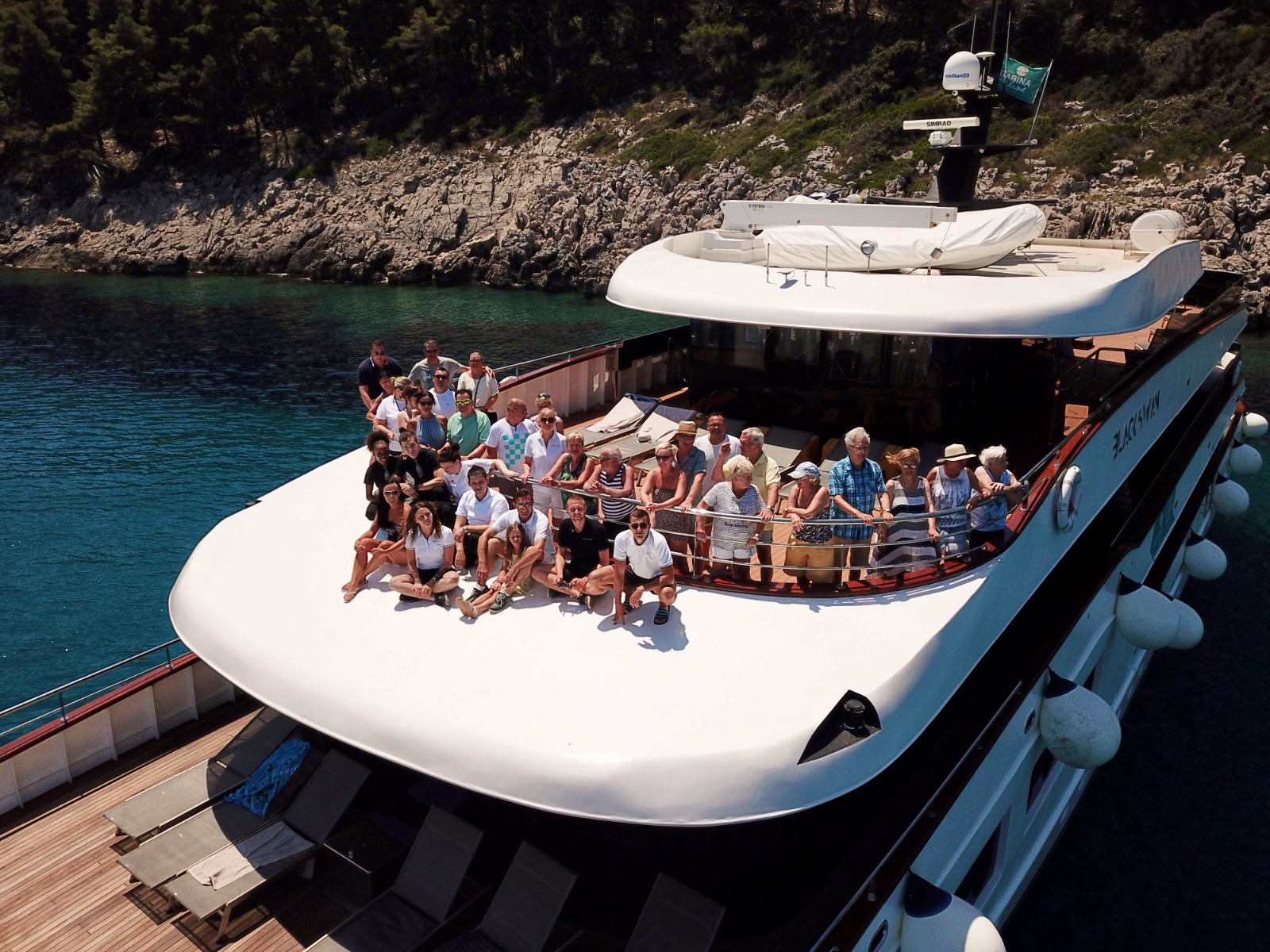Auf jeden Fall spielt die Größe des Schiffes eine ausschlaggebende Rolle dafür. Die Schiffe, die ich chartere, bieten Platz für lediglich 26 bis 34 Gäste (je nach Kategorie), also wirklich eine kleine und sehr angenehme Gruppengröße. Die Crew besteht – ebenfalls schiffsabhängig – aus 6 bis 9 Personen, die wirklich alles geben, damit die Gäste eine unvergessliche Zeit an Bord habe. Allein dadurch kommt schon eine sehr familiäre Atmosphäre auf dem Schiff zustande.
