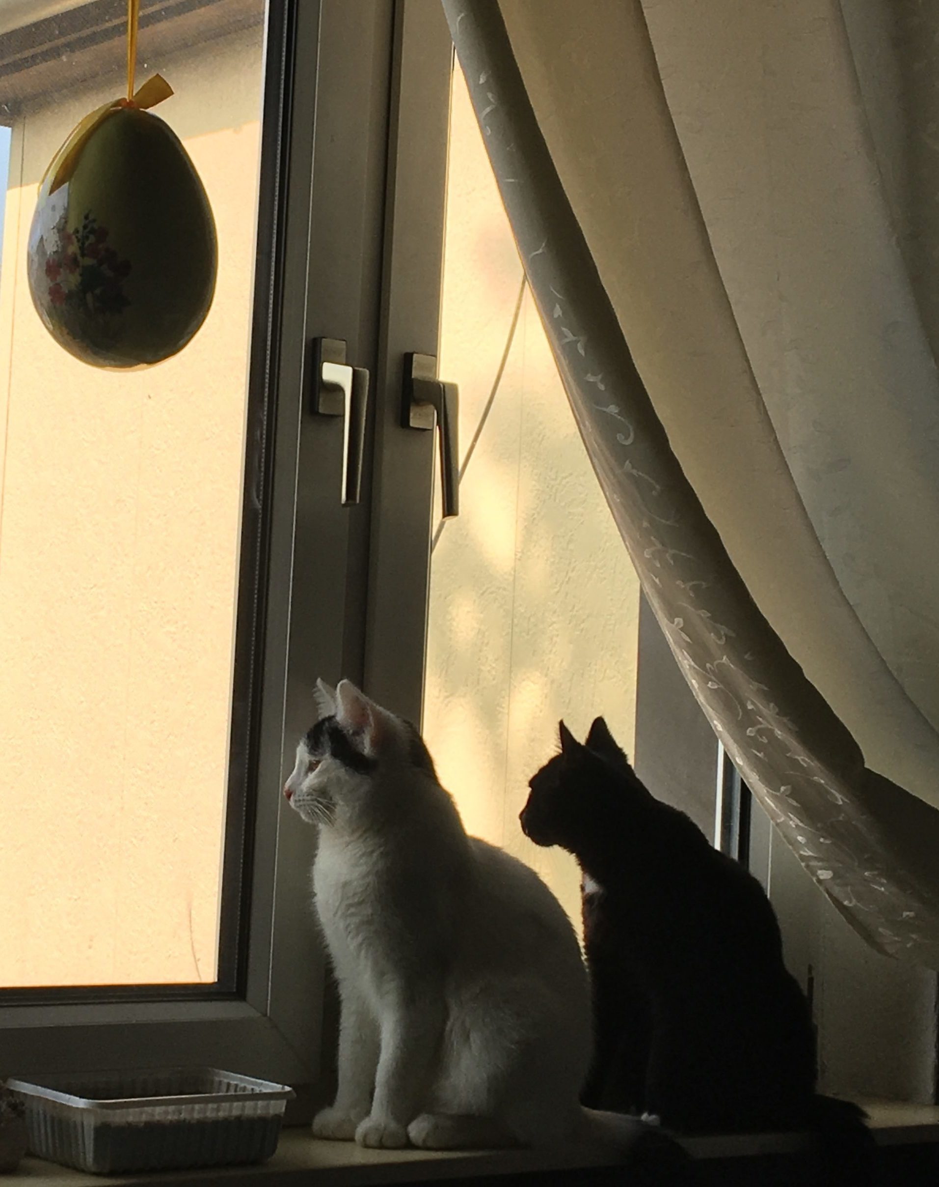 Schnell hat sich das Duo auch an den Tag- und Nachtrhythmus der Familie gewöhnt. Tagsüber spielen, schlafen und schauen die Kater viel (zum Beispiel aus dem Fenster) und legen sich dann zur Ruhe, wenn es still wird und die Nachtruhe beginnt. Wo sie ihre felligen Häupter betten, ist von Nacht zu Nacht verschieden.
