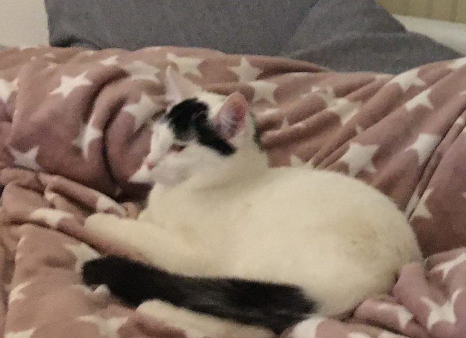 Das Paar bestand aus einem kleinerem schwarzem Kater, der etwas hinkte und einem weißen, der interessante schwarze Fleckem am Fell und einen komplett schwarzen Schwanz hatte.
