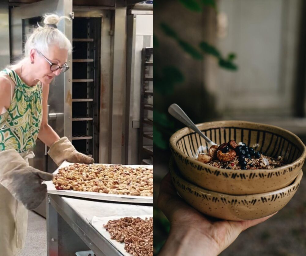 Die Gründerin Meike Schlenker-Janßen (im Bild rechts) liebt Frühstück und bezeichnet sich selbst als echte Genießerin. Nachdem sie den vollgezuckerten Einheitsbrei aus dem Supermarkt satt war, hat sie 2020 – während Corona – beschlossen, ihr eigenes Granola im Keller herzustellen und an gleichgesinnte Genussliebhaberinnen und Genussliebhaber zu verkaufen.