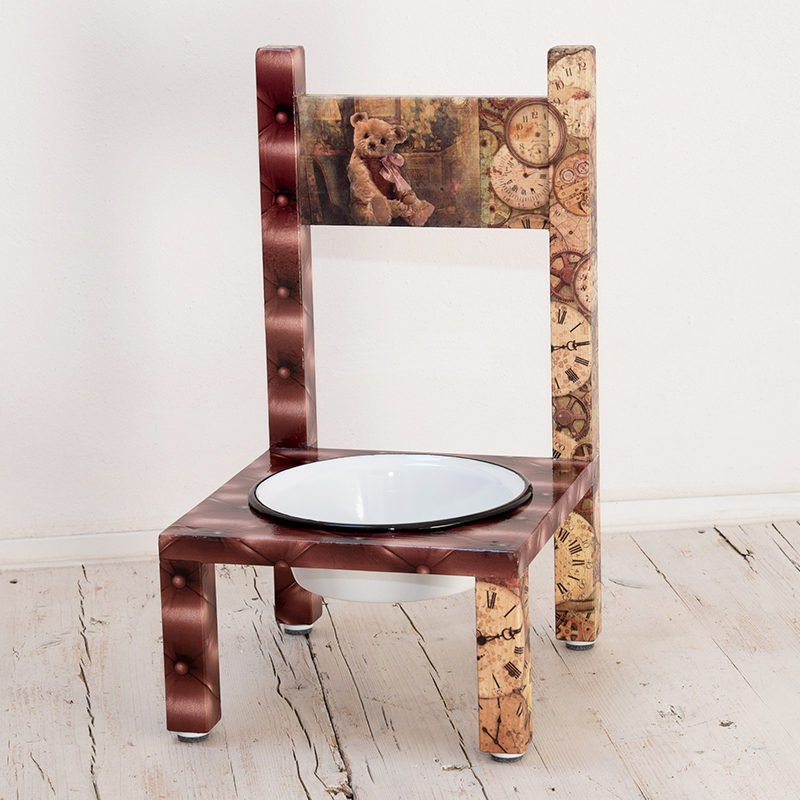 Wer also als Hundebesitzer nicht nur auf eine sauberere Umgebung am Futterplatz Wert legt, sondern auch ästhetisch entsprechende Ansprüche hat, für den ist der Schlabberstuhl DAS Fellnasen-Mobiliar schlechthin.
