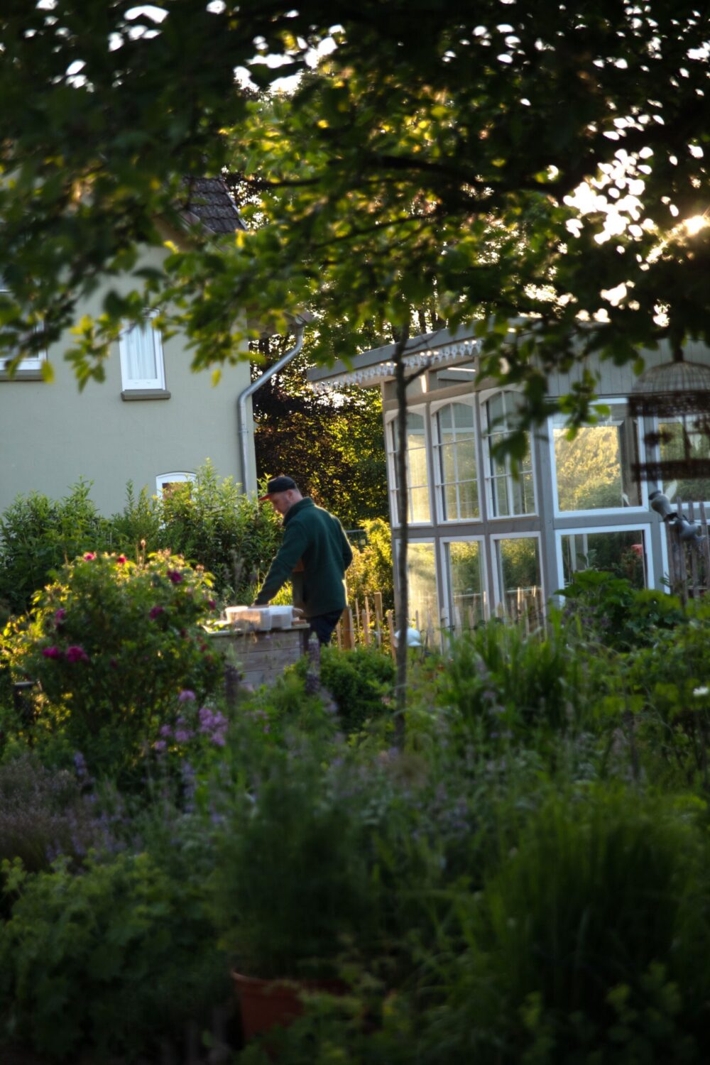 Wir beide lieben unseren Garten und haben die letzten Jahre einen Bauerngarten angelegt, mit Heilkräutern, Stauden und Nutzpflanzen. Dafür haben wir auch ein Gewächshaus kreiert, welches Lando aus alten Fenstern und Holz umgesetzt hat. Hier experimentieren wir mit Pflanzen und nutzen die Kulisse immer wieder für Fotos und Videos für den Shop.