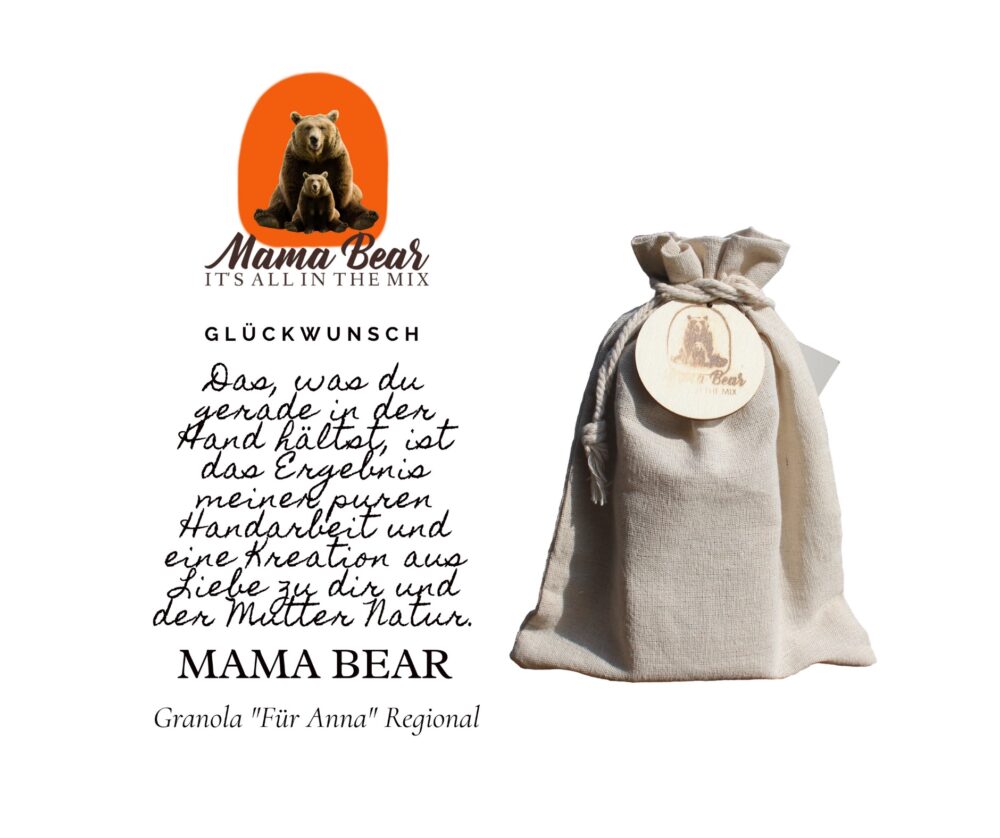 Das war für mich die perfekte Gelegenheit, etwas Neues zu wagen und meine eigene Müslimischung zu kreieren. So entstand Mama Bear Müsli – eine Verbindung aus persönlicher Notwendigkeit, kreativem Impuls und dem Wunsch nach gesunder Ernährung für meine Familie und mich.