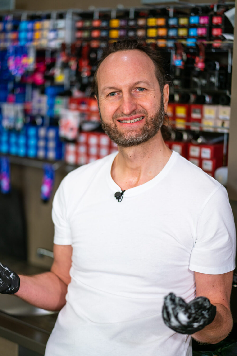 Sven Hentschel ist das, was man sich unter einem gestandenen Friseur vorstellt. Der 50jährige, der vielen Leuten auch als Star-Coiffeur gilt und seit Jahrzehnten weltweit unterwegs und zudem vielfach international prämiert ist, hat sein Handwerk von der Pike auf gelernt.