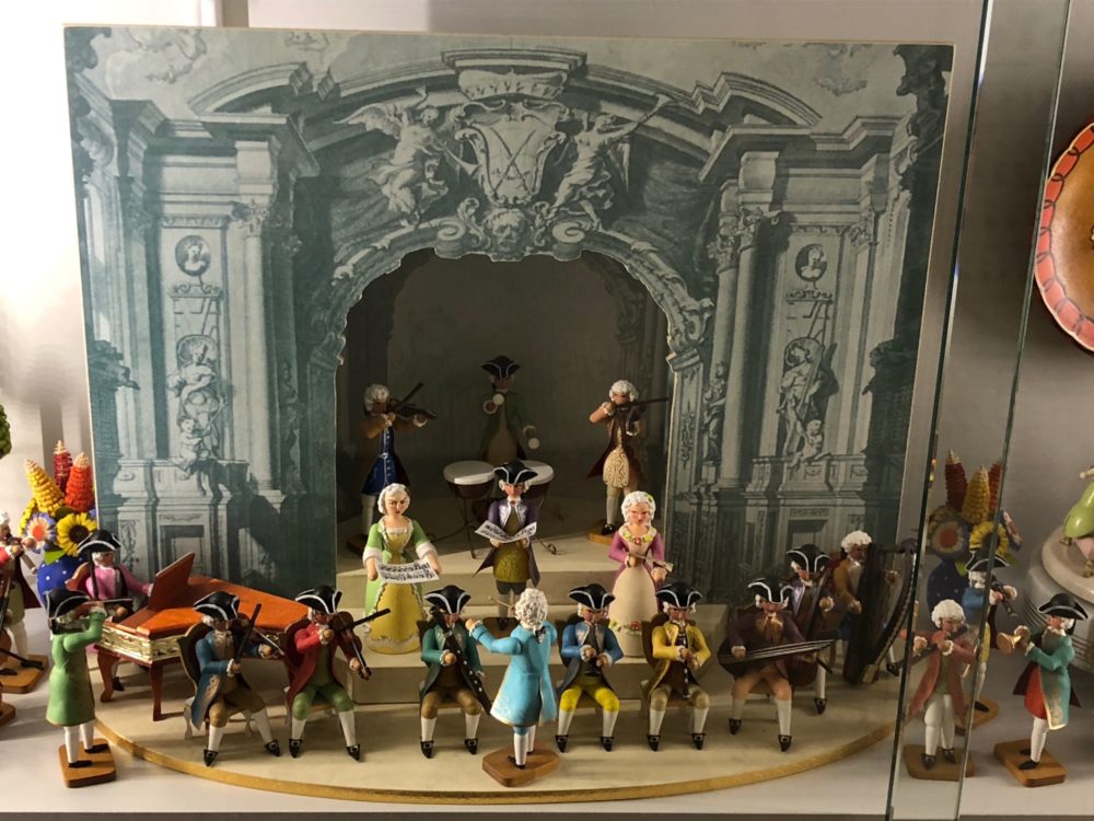 Hier begegnet einem auch jene Weihnachts-, Oster- oder Wohnzimmer-Dekorationen, die einst zu besonderen Anlässen die Räume der Eltern oder von Oma und Opa schmückten – original erzgebirgische Handarbeit!