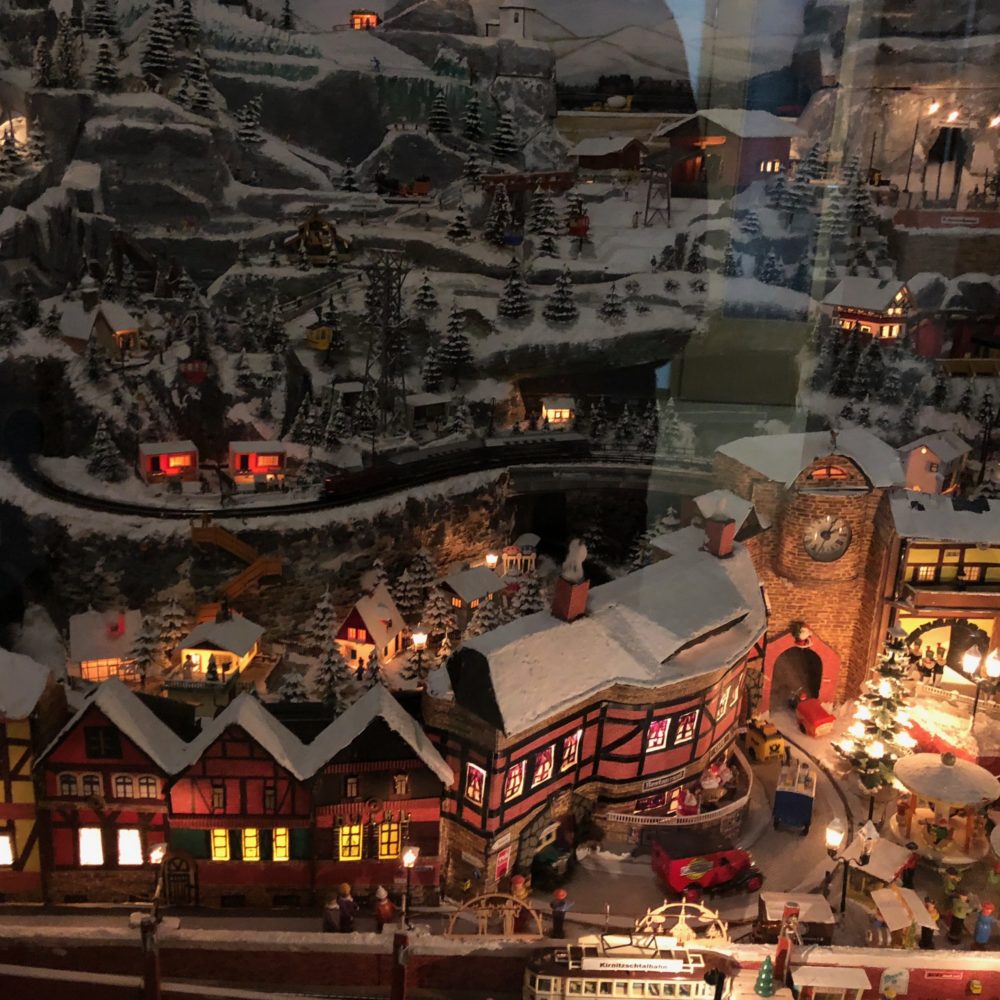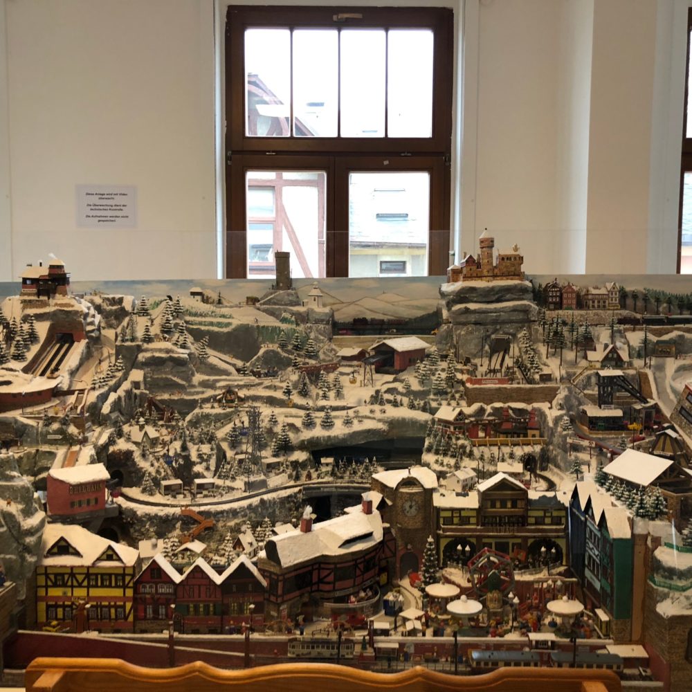 Überaus beeindruckend ist auch die einzigartige mechanische Erzgebirgslandschaft des Tüftlers Peter Uhlig aus Chemnitz (Bilder siehe unten in der Galerie). Kunstvoll reihen sich in dieser Miniatur-Landschaft Berge aneinander, schmiegen sich Häuser an das künstliche Gebirge und düsen Modelleisenbahnen ihrer Wege. Vor allem für Kinder dürfte diese Rarität – die sich zudem alle paar Minuten in eine beleuchtete Landschaft verwandelt – ein Highlight sein.