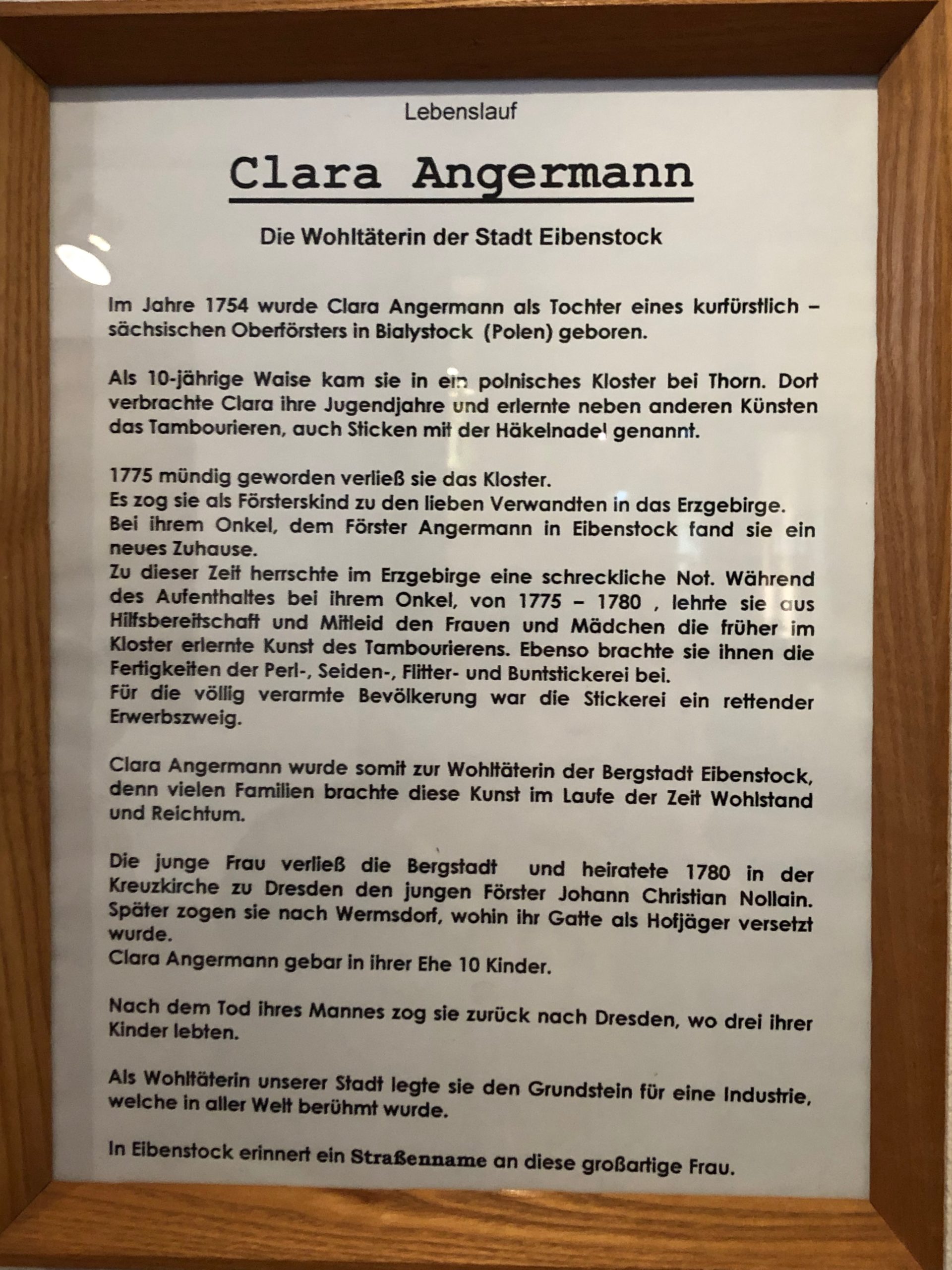 Sie brachte den weiblichen Eibenstockern zu dieser Zeit das Tambourieren bei – das Sticken mit der Häkelnadel. Es wurde eine Erfolgsgeschichte, die bis heute anhält. Denn: Auch gegenwärtig findet man etliche Stickerei-Unternehmen in Eibenstock.